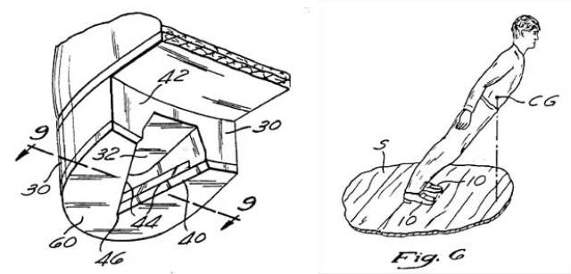 This time, the only difference is that the model shrunk her body and an artificial couple of feet attached at the other end of board.